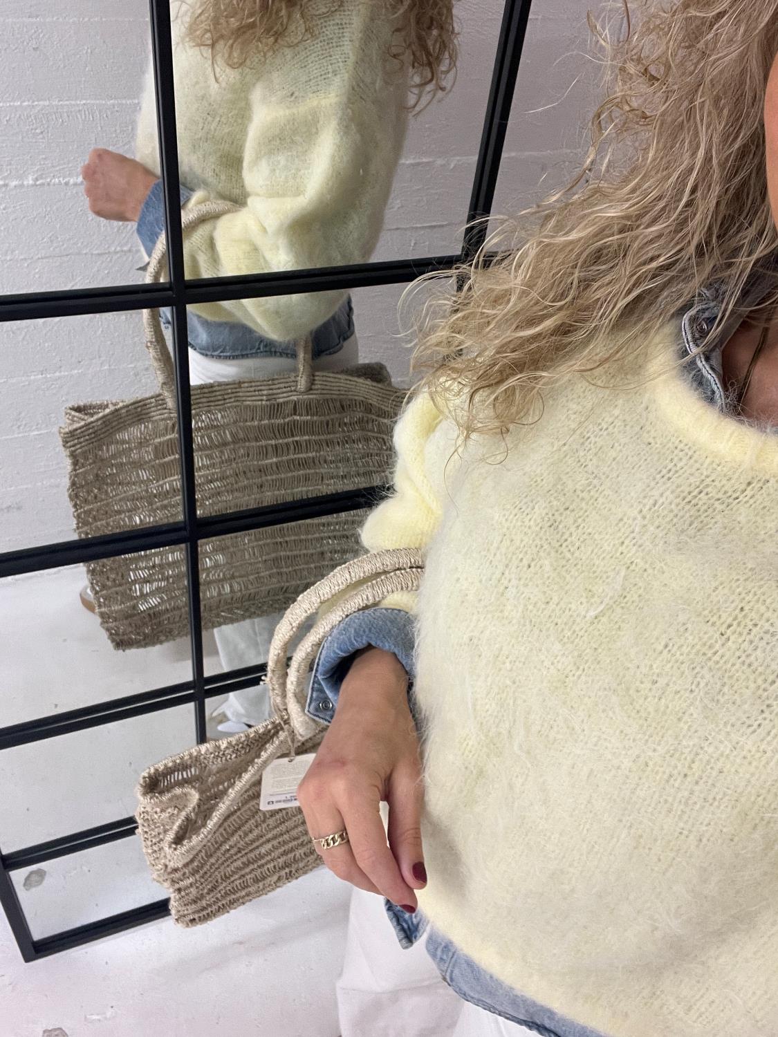 Nydelig strikkegenser i en luksuriøs alpakka-blanding! Genseren kommer i en deilig lysegul farge, har rund hals og lange ermer. Den har en avslappet passform.