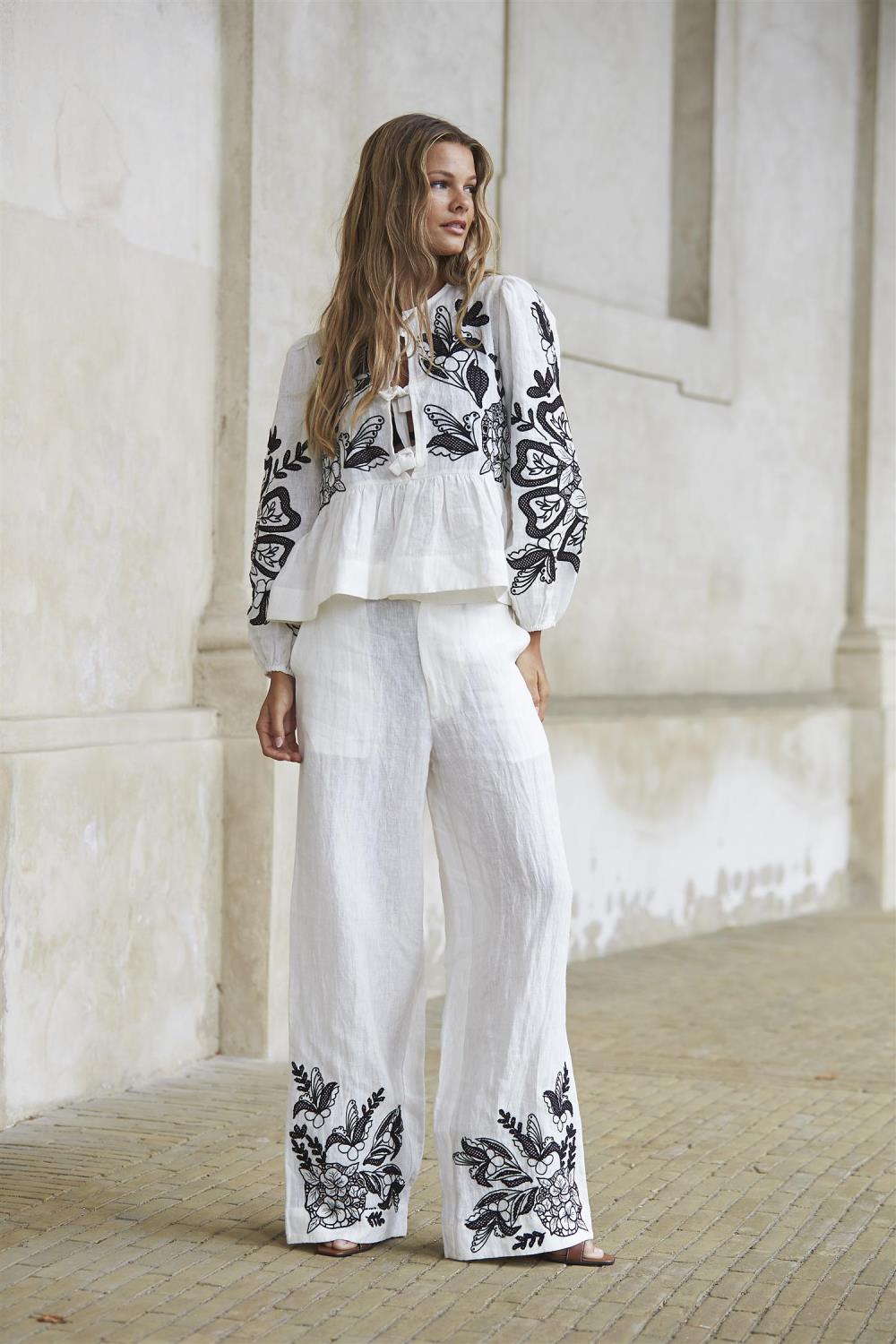 Anni Pants White W/ Black Embroidery