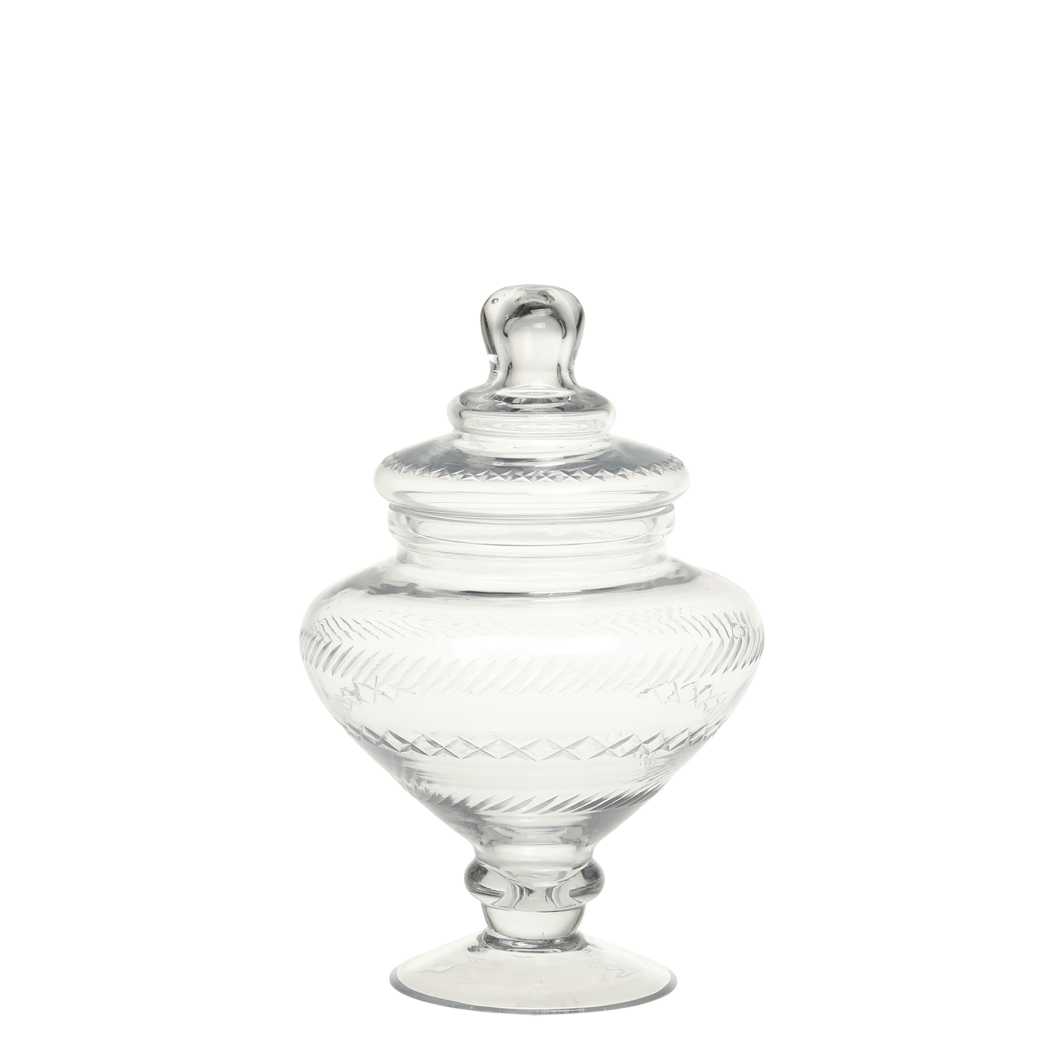 Glasskrukke på fot, med lokk, fra Chic Antique.