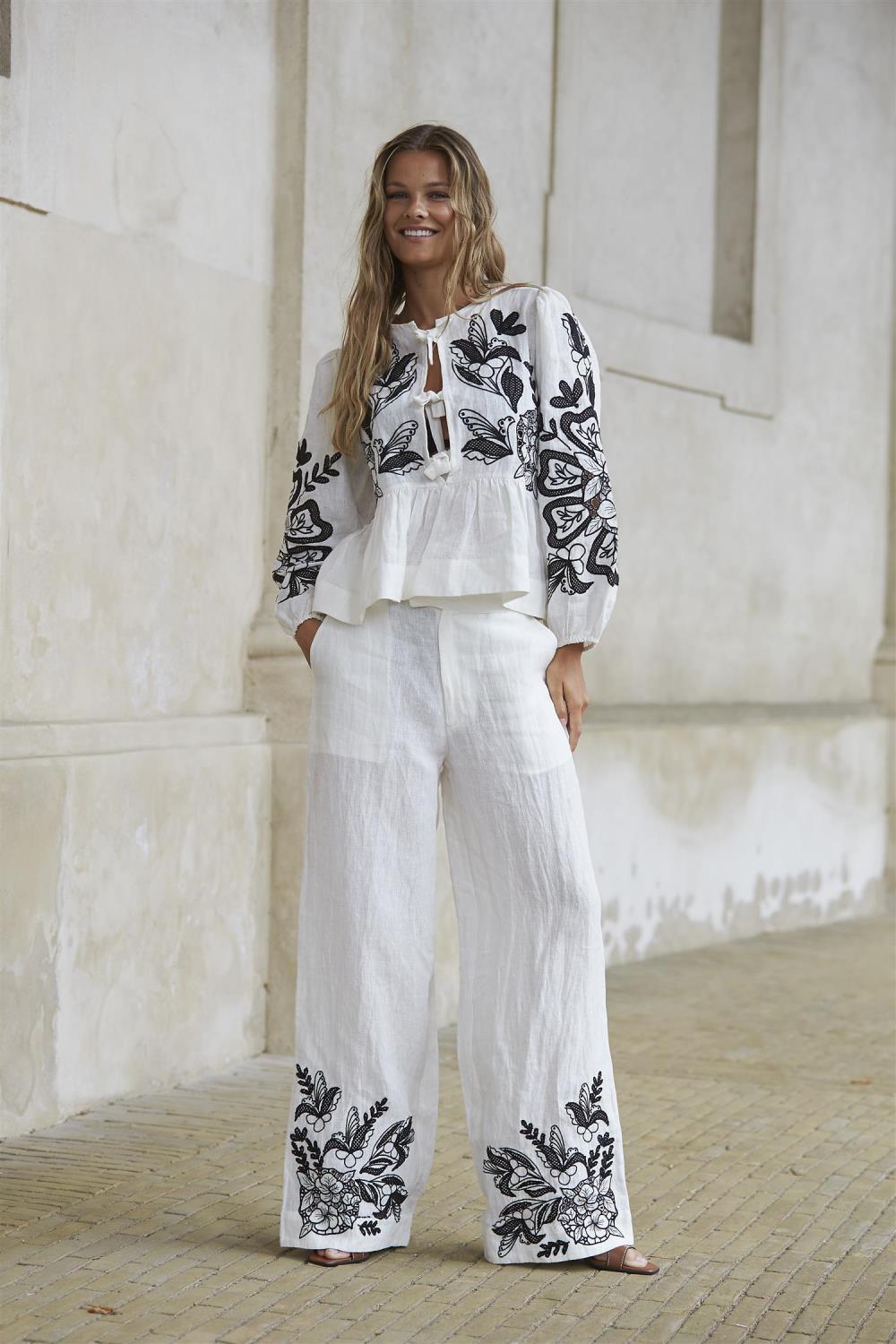 Helene Studios Anni Blouse White W/ Black Embroidery