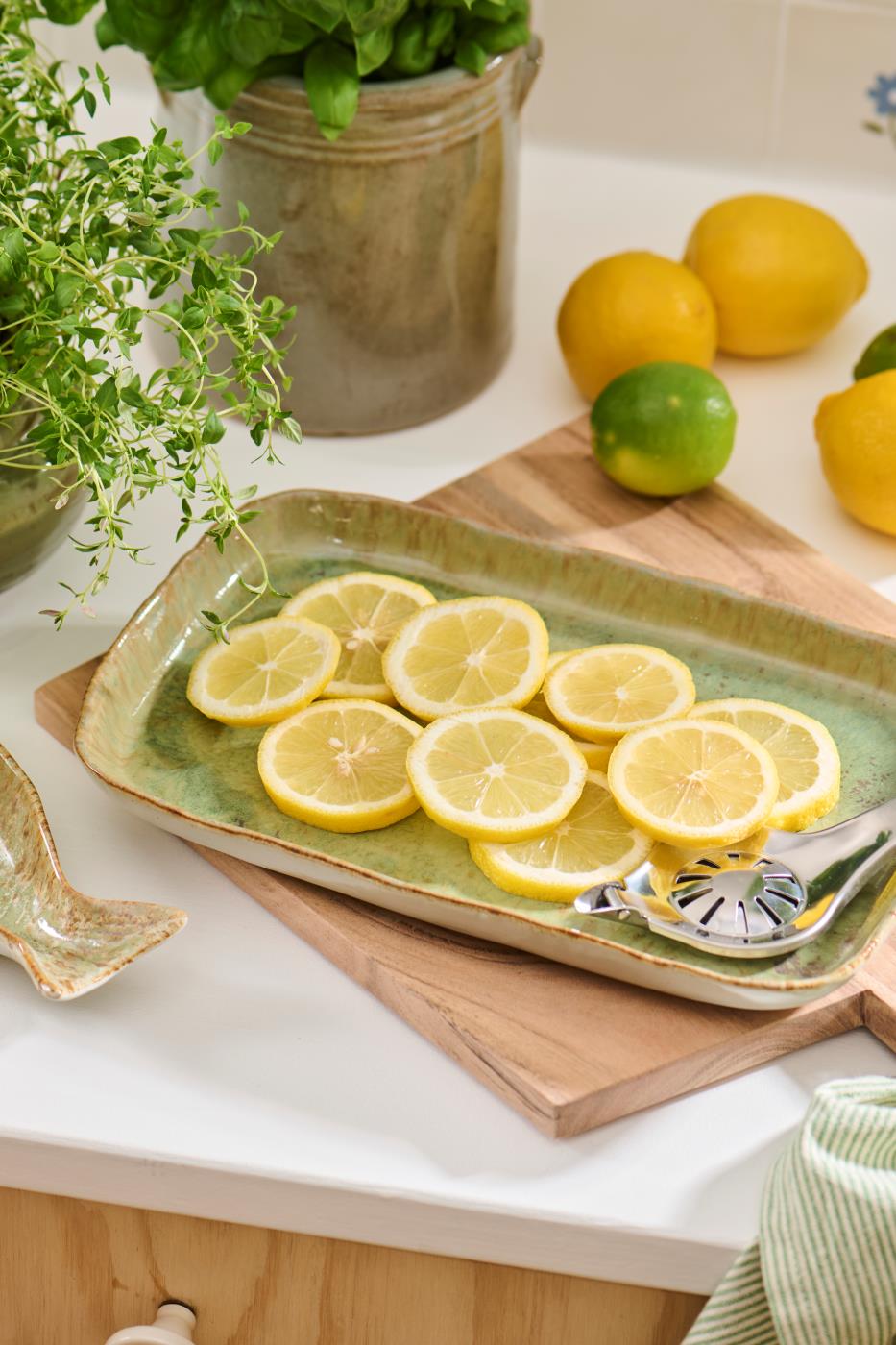 Elegant brett fra Ocean-serien i en grønn fargetone, laget med reaktiv glasur, som først avslører sin vakre farge etter brenning, noe som gir hvert brett et unikt utseende. Perfekt for servering av småretter eller som en dekorativ detalj på bordet.