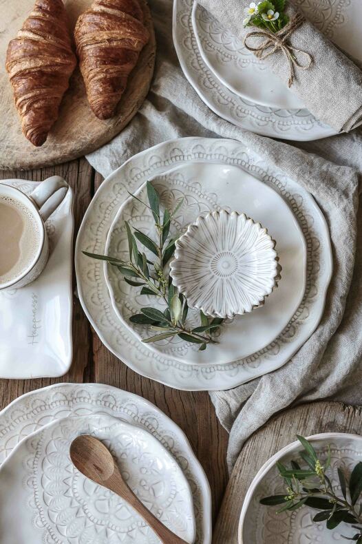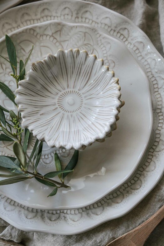 Vår håndlagde steintøyserie med pregede mønstre i en vakker, livlig finish.