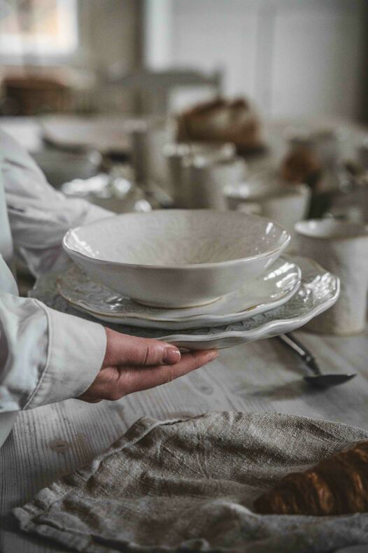 Vår håndlagde steintøyserie med pregede mønstre i en vakker, levende finish.