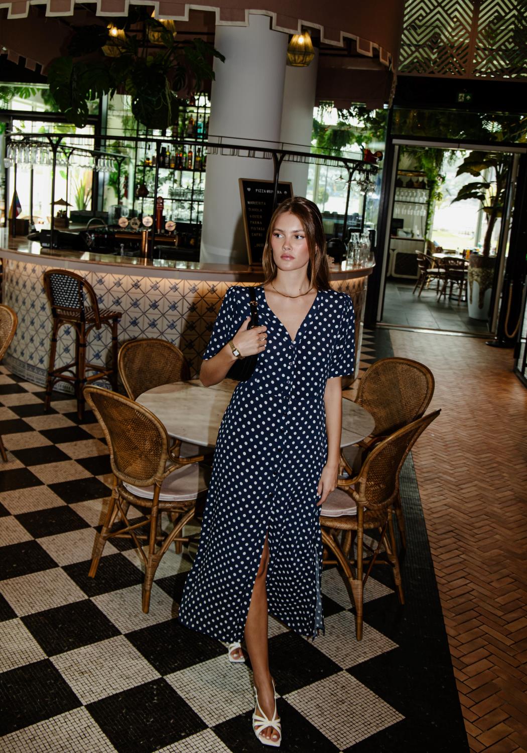Modellen er 168 cm høy og har på seg størrelse XS.