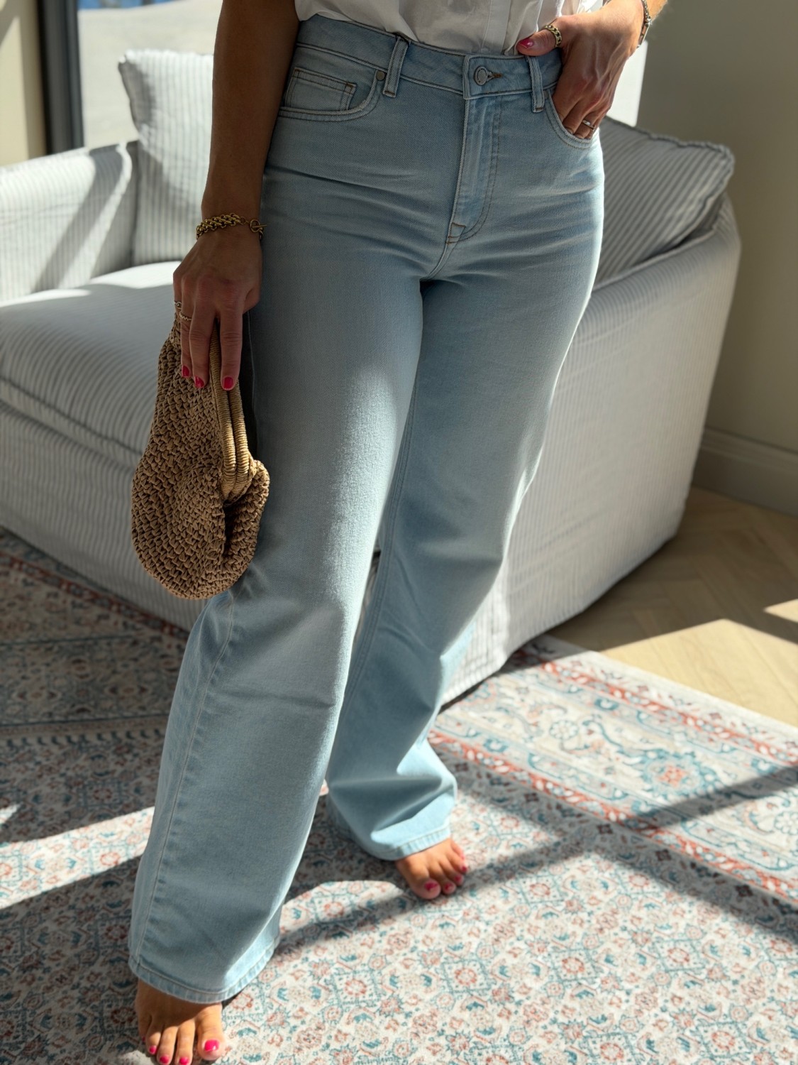 The Louis High Wide fra My Essential Wardrobe er en tidløs og flatterende jeans med høyt liv og vide ben. Den lyse blå vasken gir et rent og sofistikert uttrykk, og gjør den til et perfekt baseplagg i en moderne garderobe.