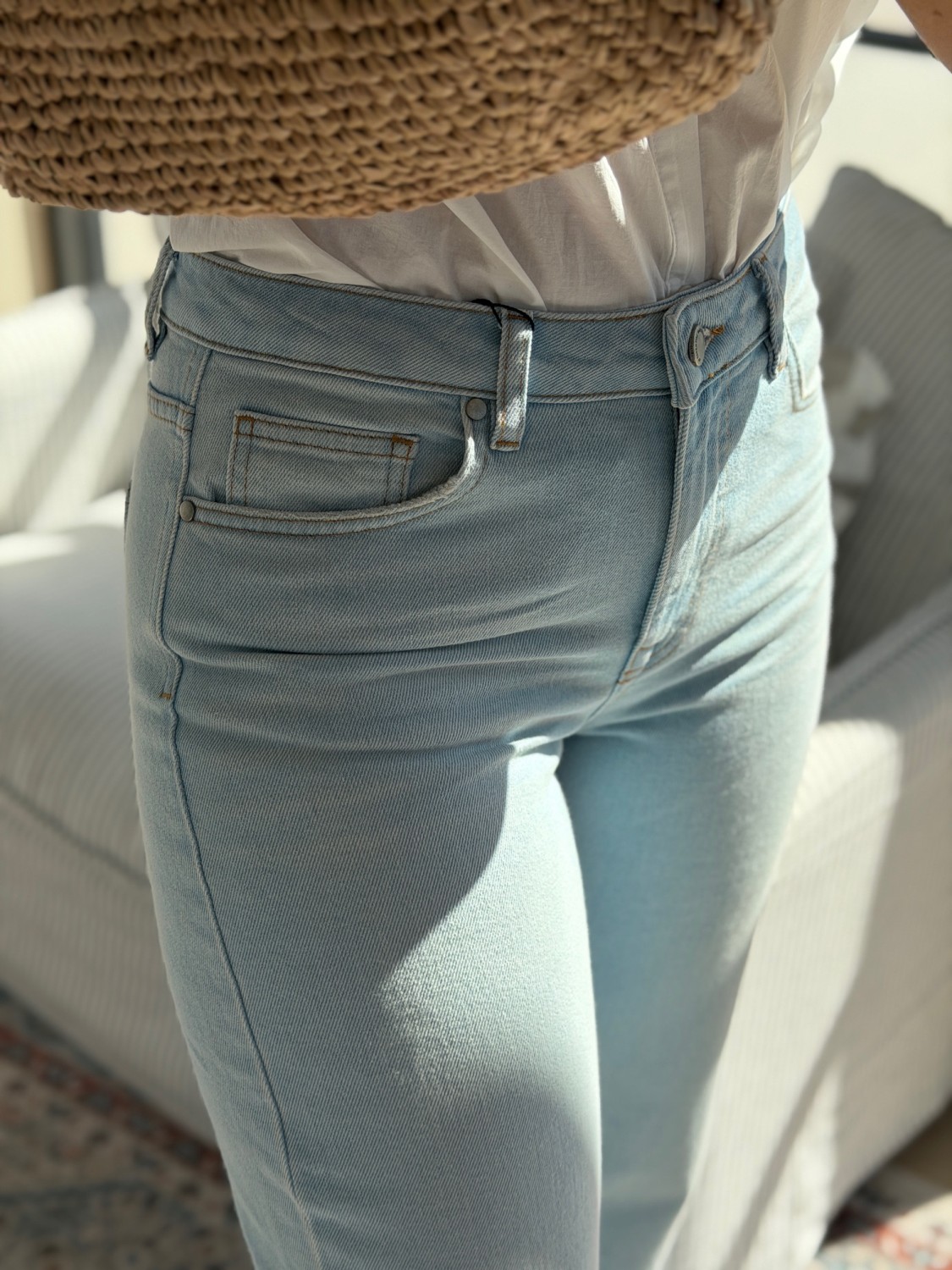 Style Louis High Wide med en enkel topp og sneakers for en lys og avslappet sommerlook, eller med blazer og hæler for et mer gjennomført uttrykk.