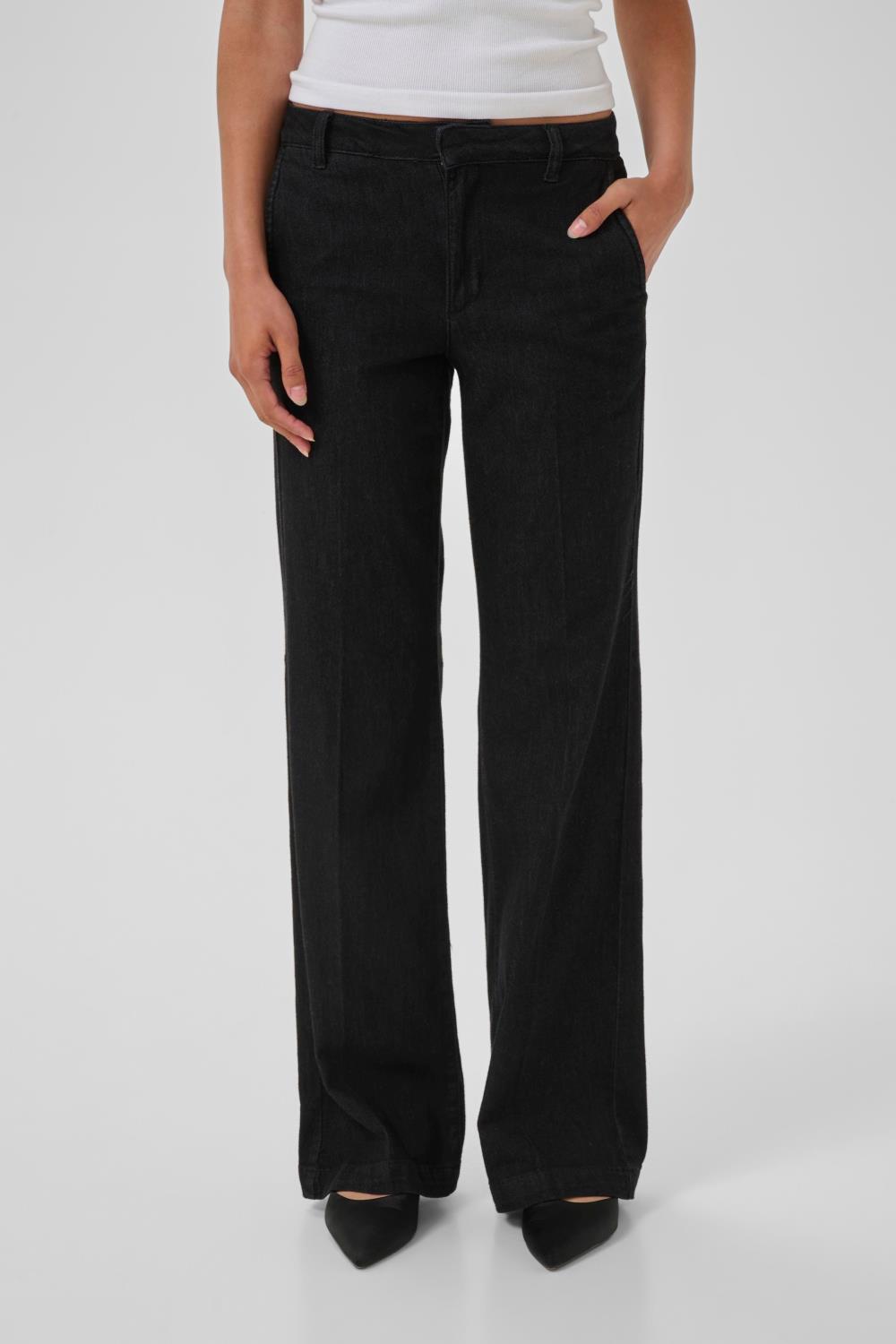 Jeans med vid passform og klassisk, rett ben. Mellomhøyt liv, full lengde og praktiske beltehemper sikrer komfort og stil daglig.