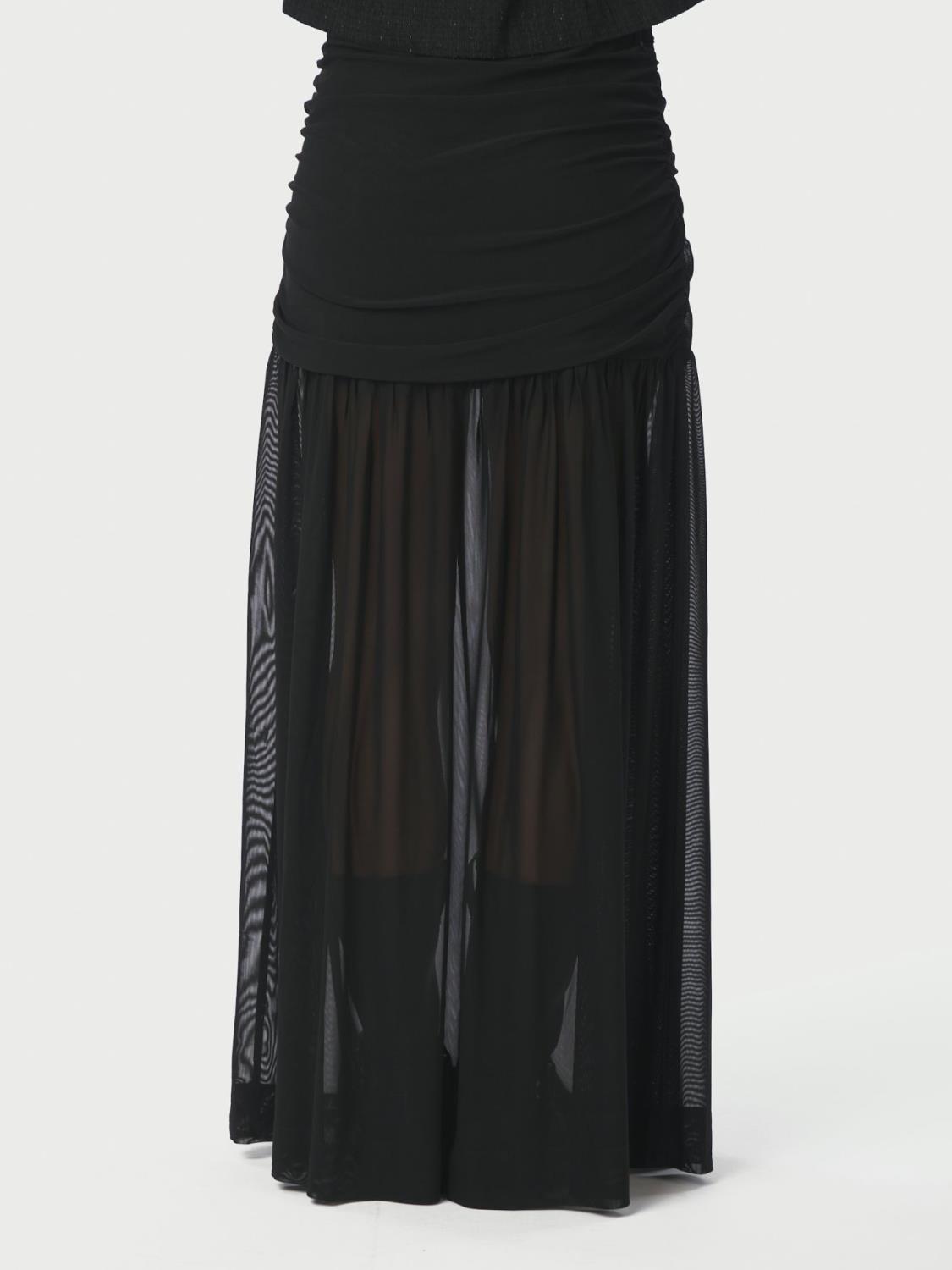 Lang mesh skjørt fra Neo Noir med dobbeltlag i den øverste halvdelen som sitter tett, og er gjennomsiktig nedenfor.