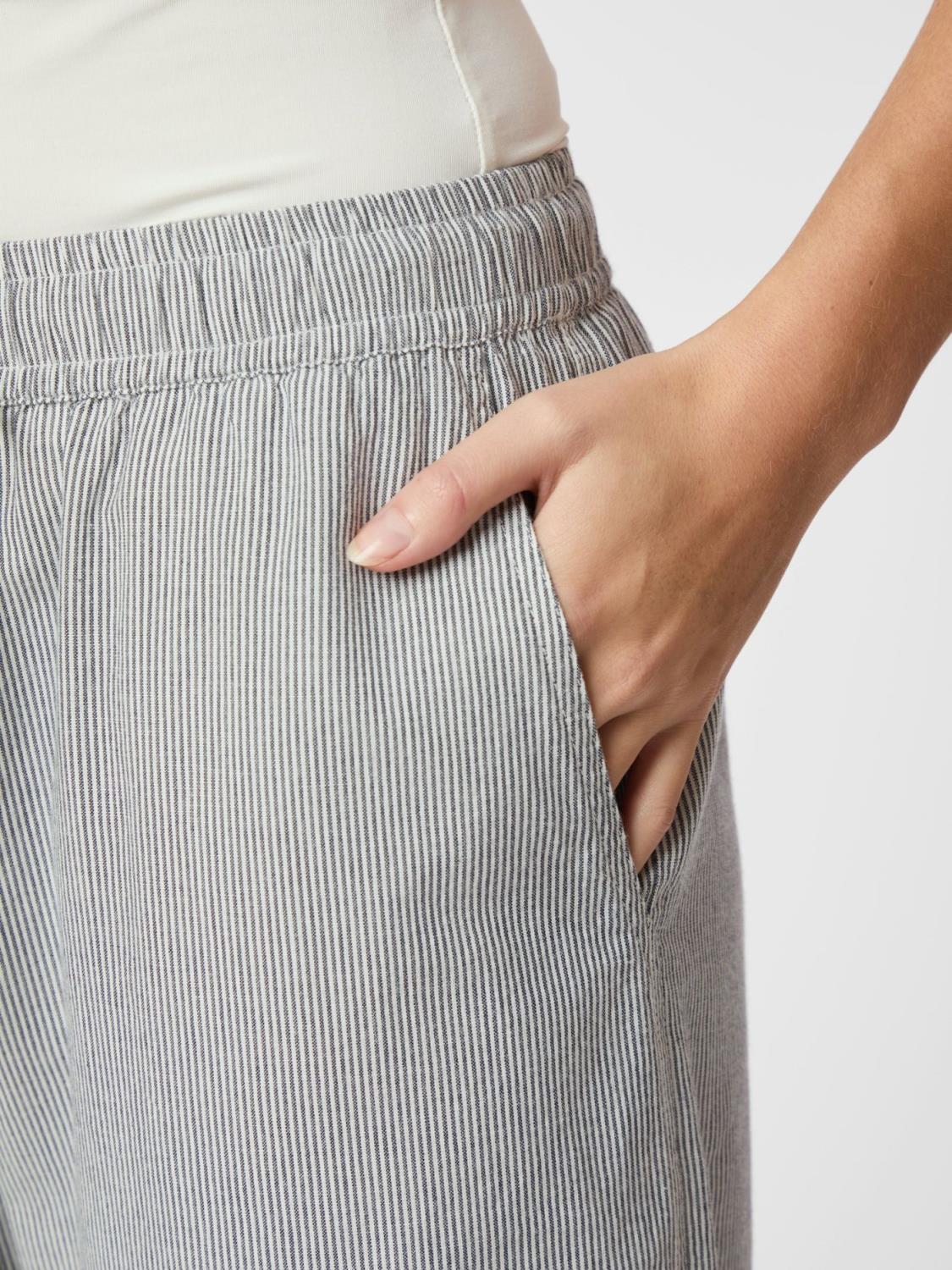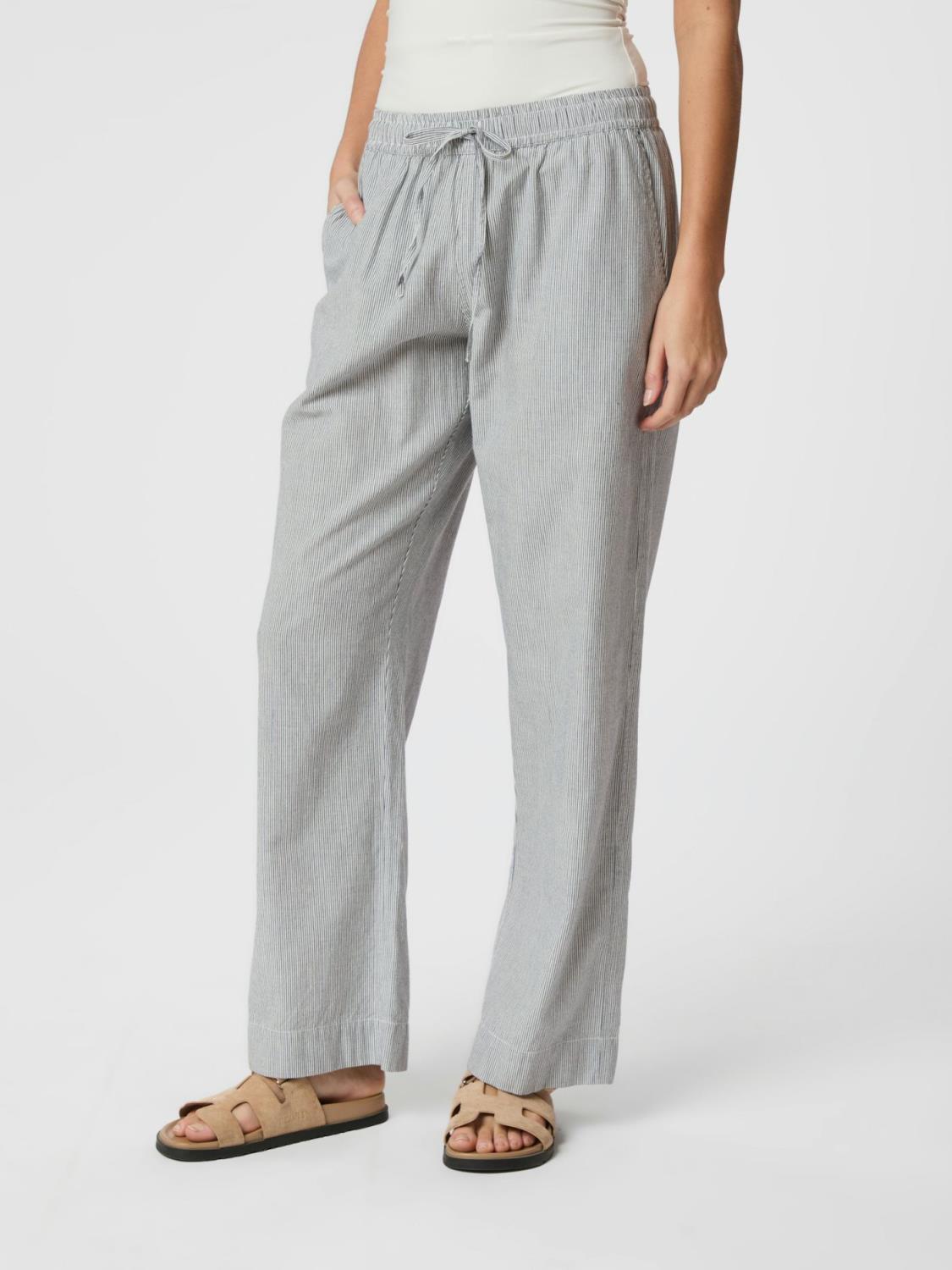 Kule og avslappede bukser i en myk stripete kvalitet. Buksene har vide ben og elastisk midje med snøring. Modellen er 176 cm høy og har på seg størrelse 36.
