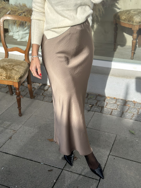 Vicky Heavy Sateen Skirt fra Neo Noir. Langt skjørt med strikk på innsiden av midjen. Skjørtet har bias cut og har en veldig flatterende passform. Vicky Heavy Sateen Skirt er laget i nydelig glatt sateng, og det er like fint til hverdag som til fest. Style det gjerne med en deilig strikkegenser til hverdag, og en fin topp til fest.