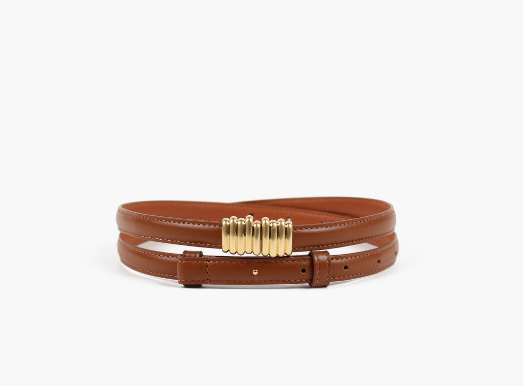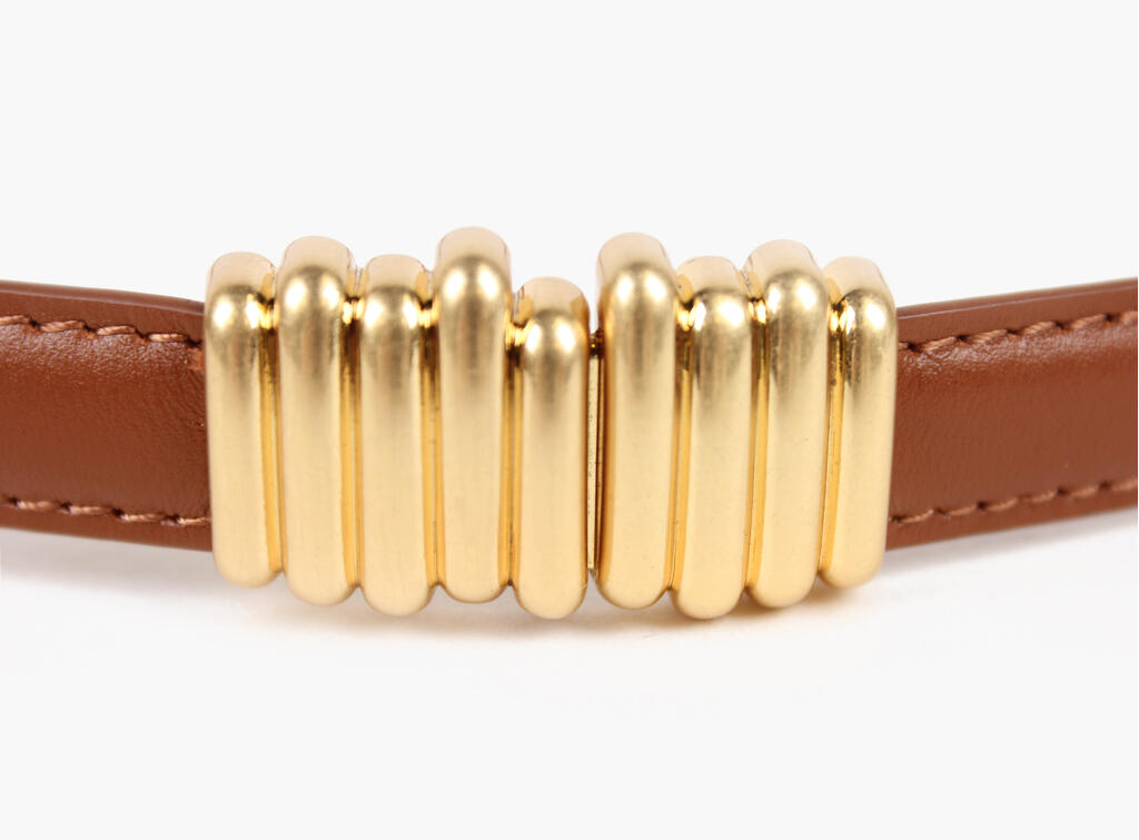 Beate skinnbelte fra Nohr, i fargen “cognac”. Dette er et smalt belte som passer perfekt til en kjole eller over en blazer.