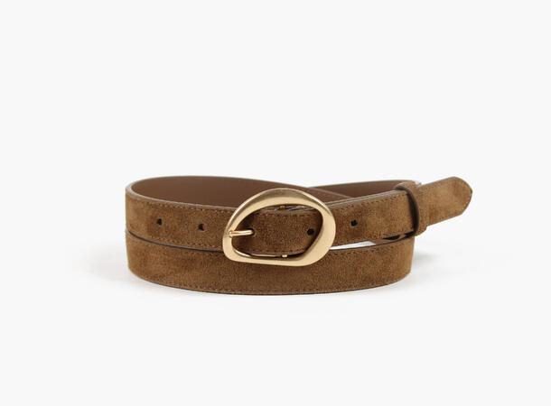 Mia belte fra Nohr i semsket skinn, med ogranisk gullspenne.