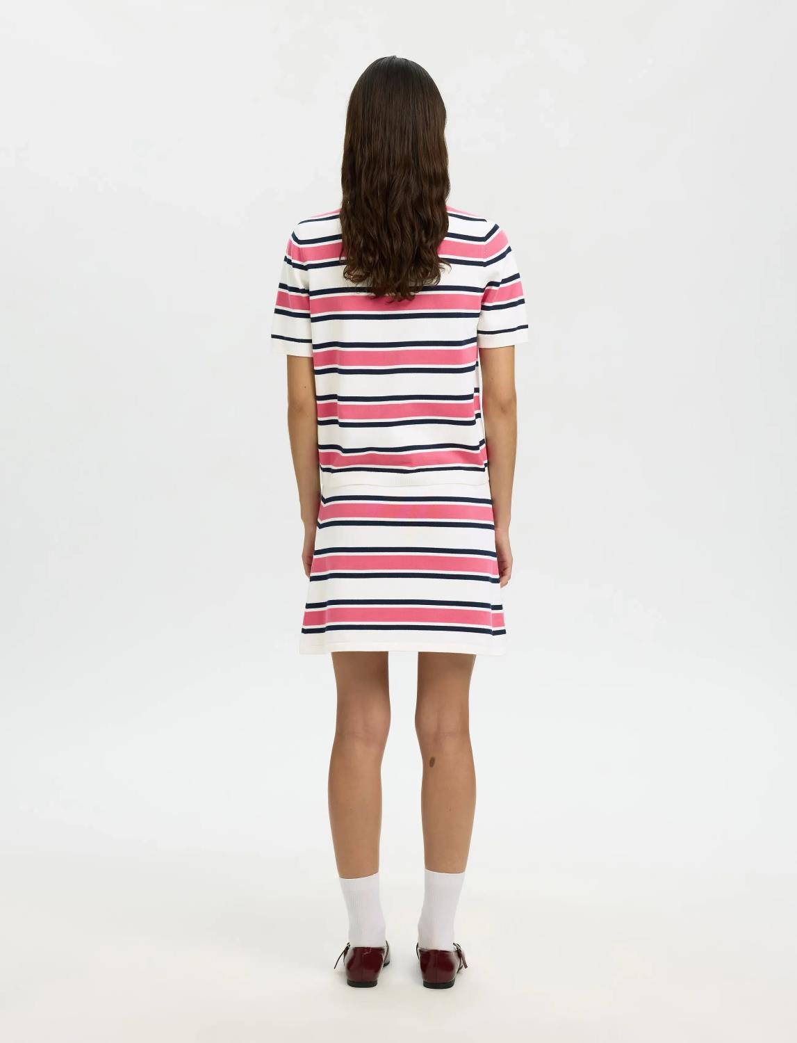 Dette strikkede skjørtet har høyt liv og minilengde, noe som gjør det til et moderne valg for hverdagsbruk. Den ufôrede designen sikrer en komfortabel passform.