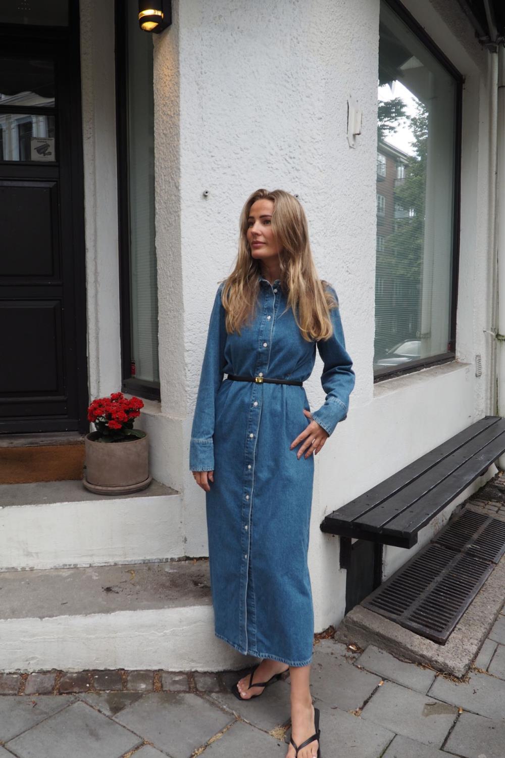 Regular Agathe Long Denim Dress fra Selected Femme er en tidløs og allsidig skjortekjole i en klassisk, medium blå denimvask. Kjolen har en rett passform med en flatterende silhuett som faller fint langs kroppen. Den er designet med en klassisk krage, gjennomgående knappelukking i front og lange ermer med brede mansjetter, som tilfører en sofistikert detalj. Laget i en behagelig blanding av bomull og økologisk bomull, er dette et perfekt helårsplagg.