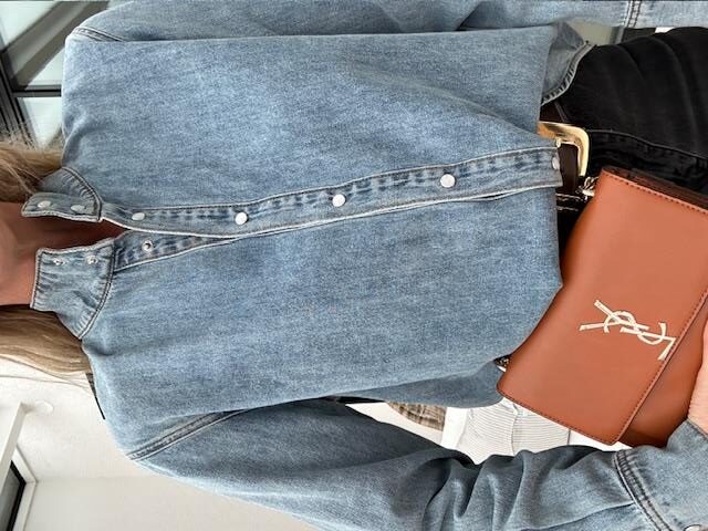 -Lett denimbluse -Avtakbar sløyfekrage i samme fargetone -Lukking med knapper foran -Lange ermer