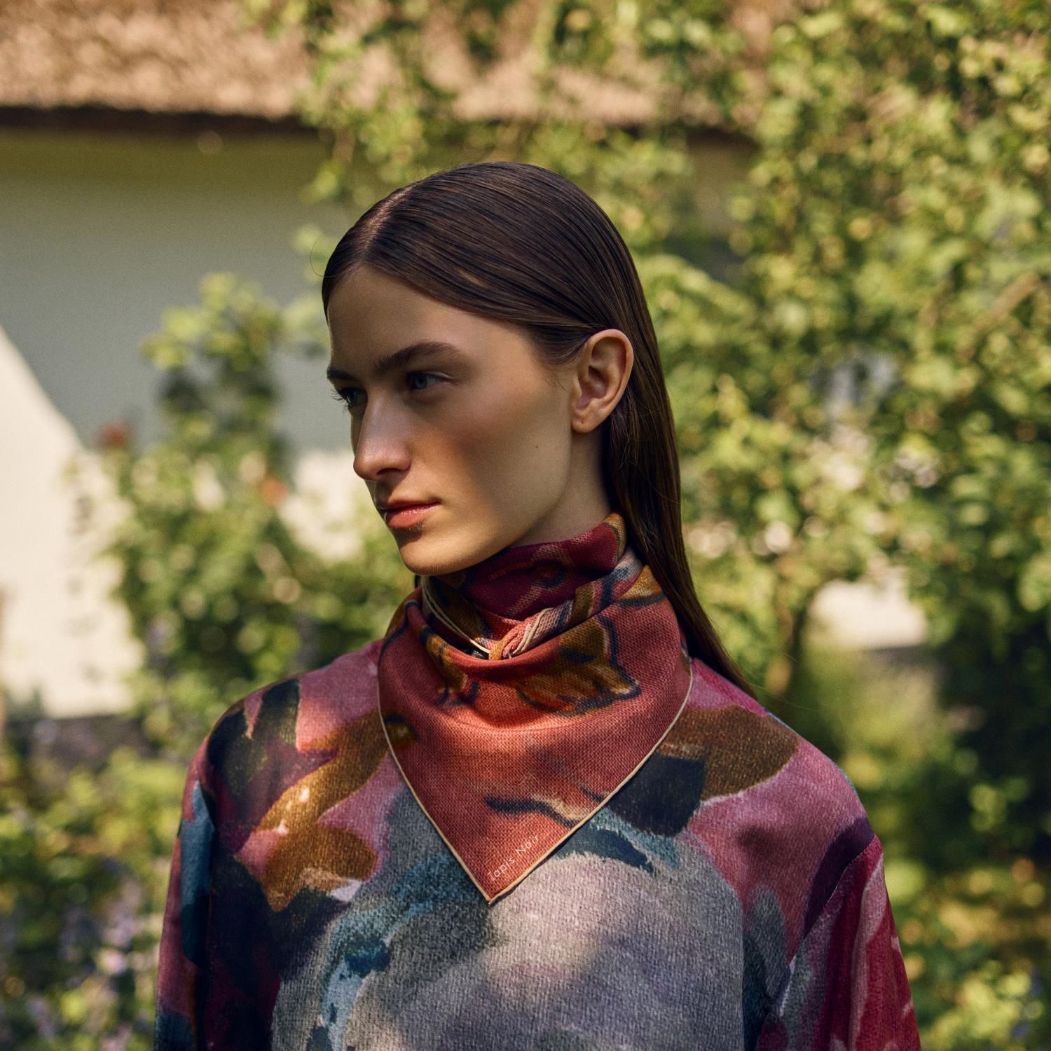 Skjerfet er laget i vår myke blanding av bomull og silke.