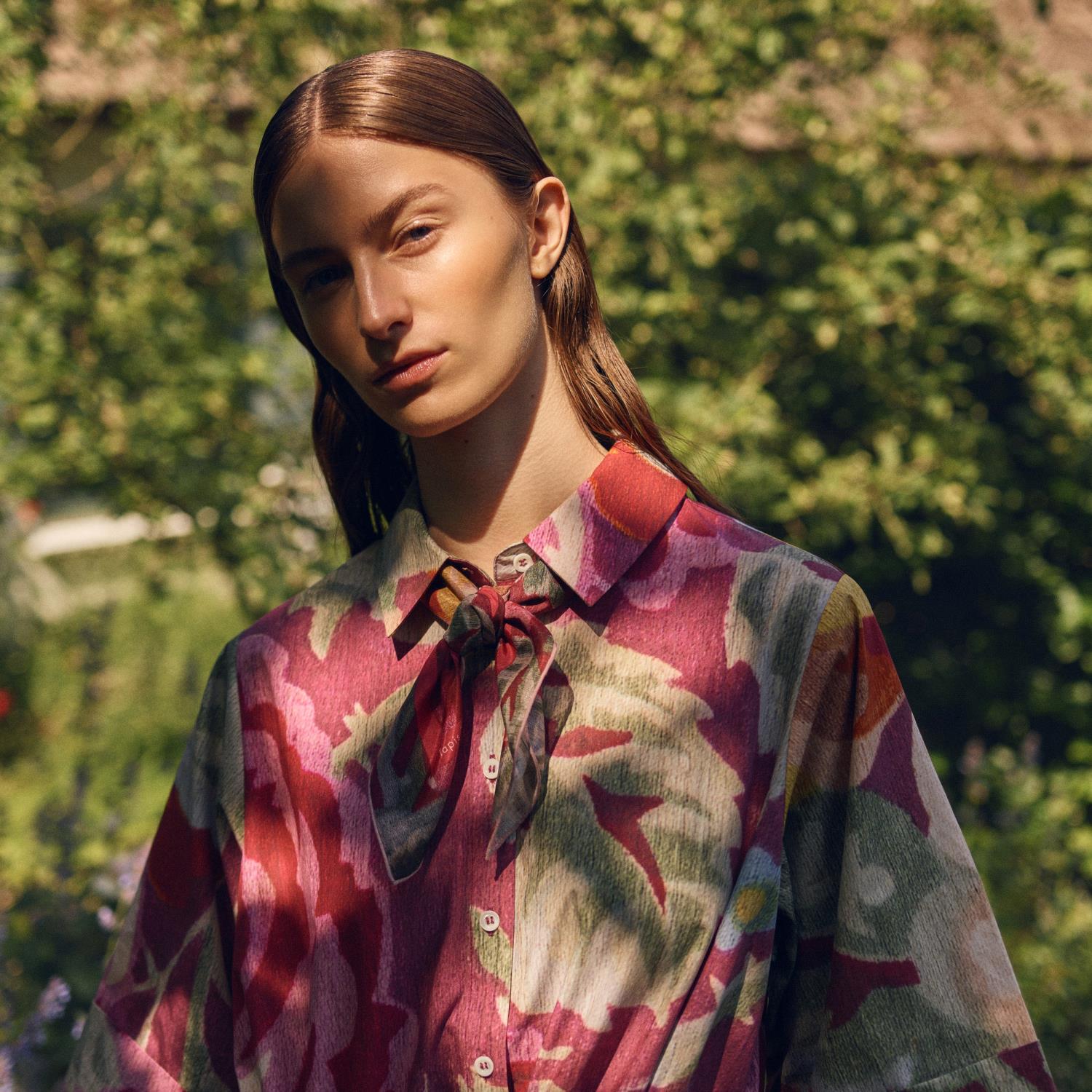Trykket er basert på en spansk tekstilprøvebok fra 1910-tallet, valgt fra vårt interne arkiv med antikke stoffer.