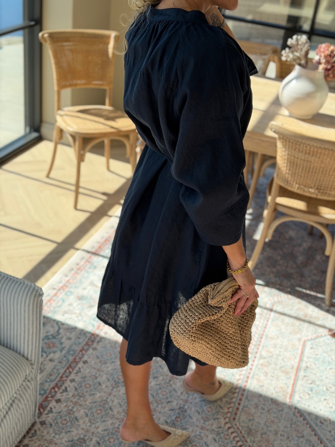 Frusa Dress fra Urban Pioneers er en tidløs og feminin kjole i 100% lin – perfekt for en elegant og komfortabel sommergarderobe. Den dype marineblå fargen gir et sofistikert uttrykk, mens den naturlige linkvaliteten gjør kjolen lett, pustende og behagelig mot huden.
