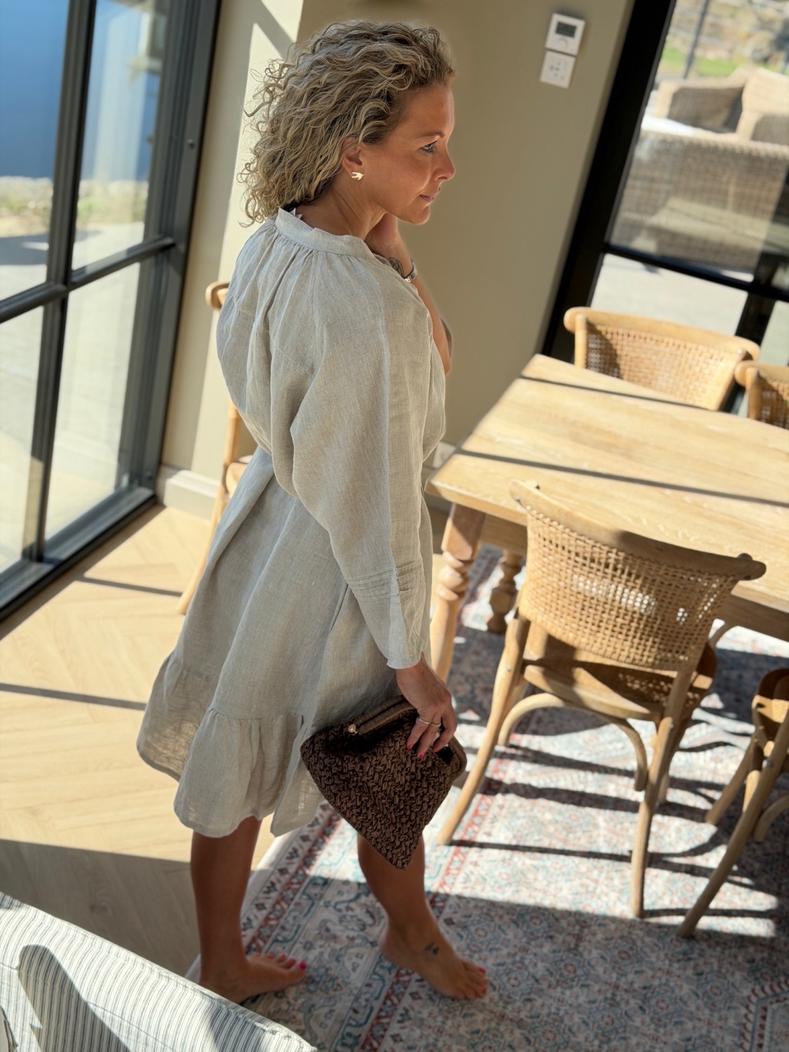 Frusa Dress fra Urban Pioneers er en tidløs og feminin kjole i 100% lin – perfekt for en elegant og komfortabel sommergarderobe. Den naturlige linkvaliteten gjør kjolen lett, pustende og behagelig mot huden.