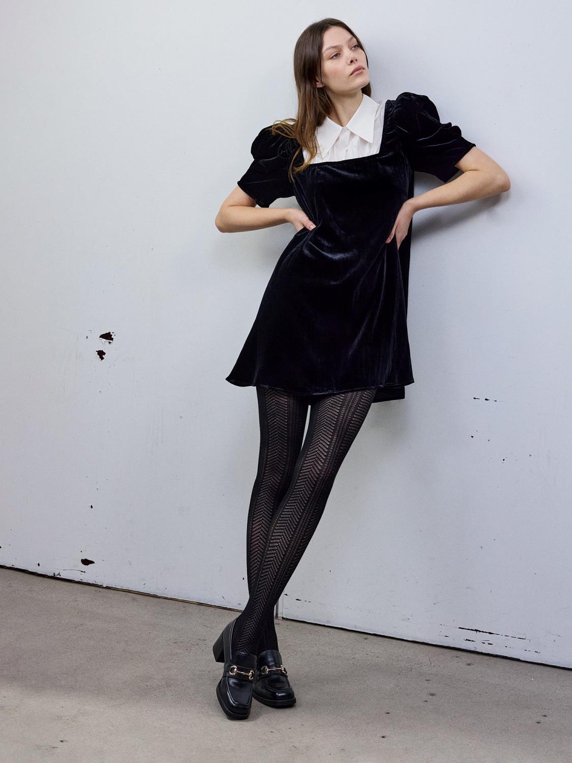 Luksuriøse viskosetights med blondemønstre er et must denne sesongen. Den sømløse bendelen på tightsen sikrer en diskré finish. Den forsterkede tåen øker slitestyrken, slik at stil og komfort går hånd i hånd i disse tightsene.
