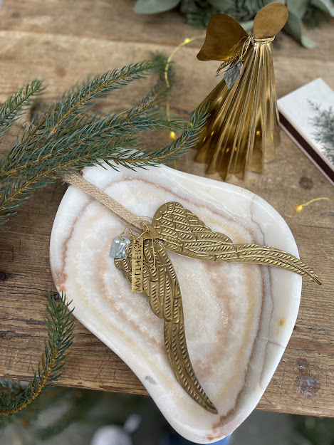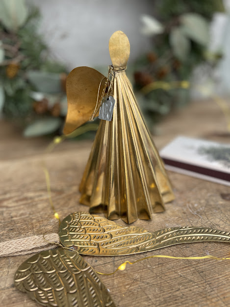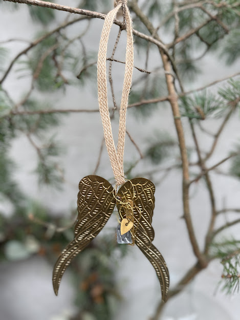Vakre Englevinger med inngravert mønster i selve vingene. God størrelse, like fin liggende som hengende. 15 cm høy
