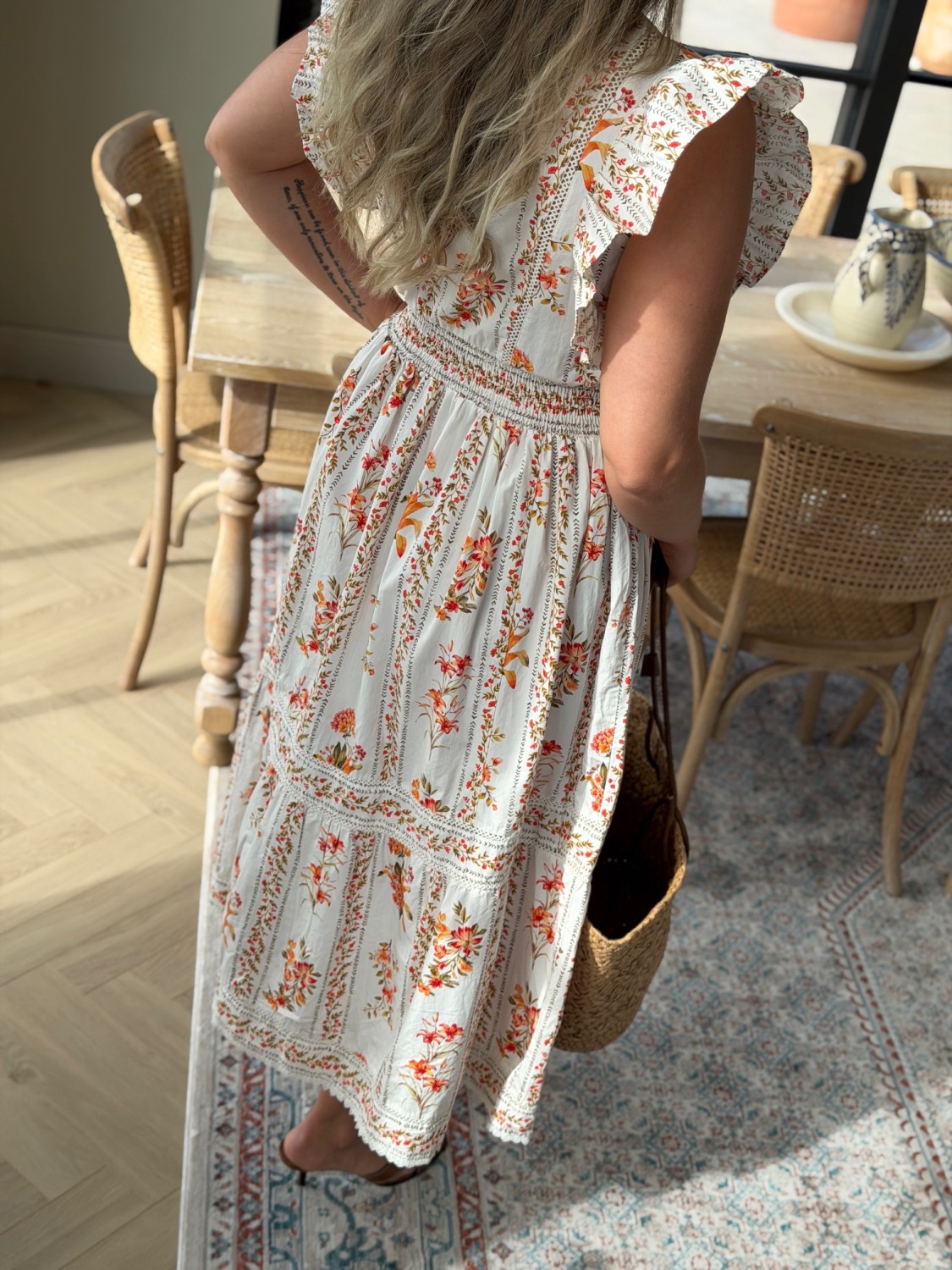 YAS Floratina CS Long Dress Pristine – Blomstrete midikjole